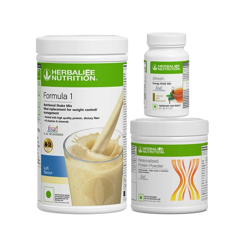 Herbalife Nutrition Combo Pack – Formula 1 Kulfi Shake (500 g) + Protein Powder (200 g) + Afresh Tulsi